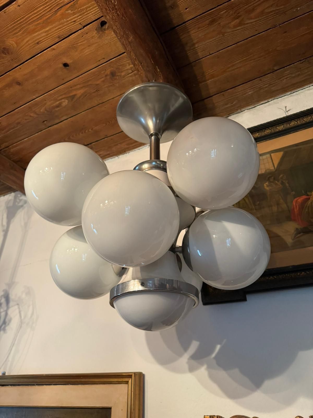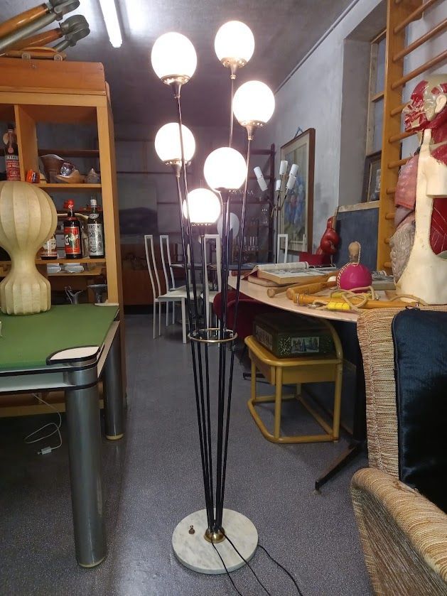 Lampa da terra vintage modello Alberello, design Stilnovo, globi bianchi.