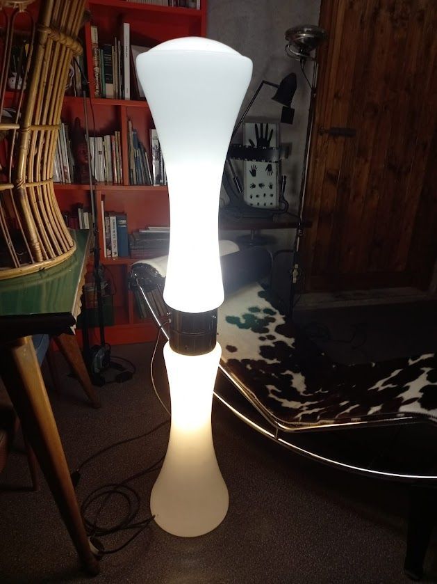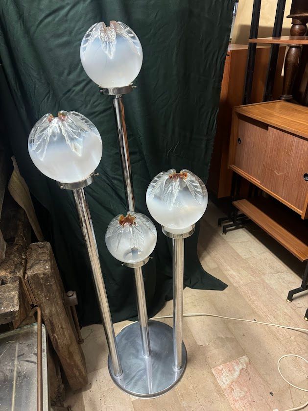 Lampa da terra designer Carlo Nason per Mazzega in vetro di murano e acciaio cromato.