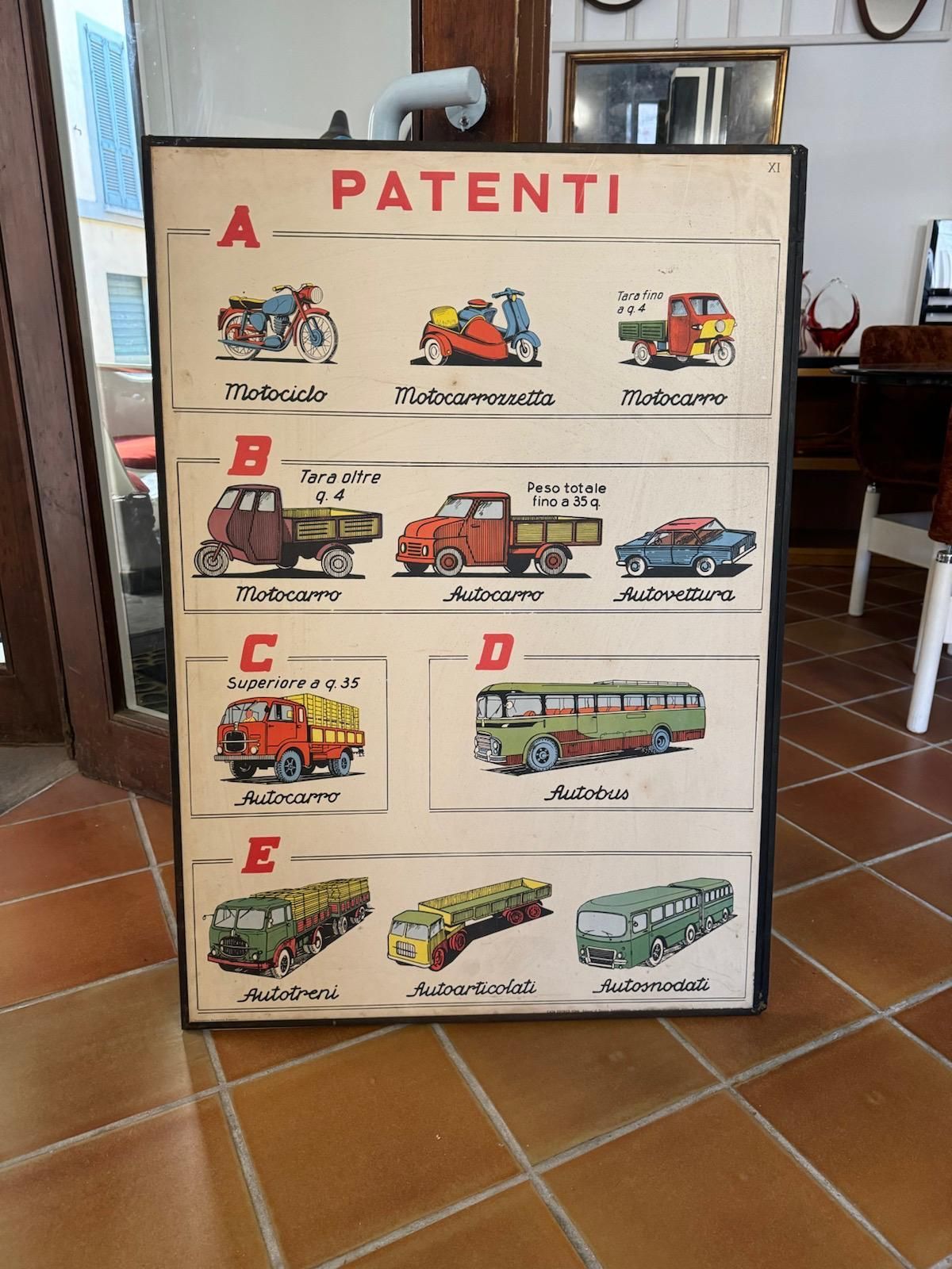 Tabellone da scuola guida vintage, Italia